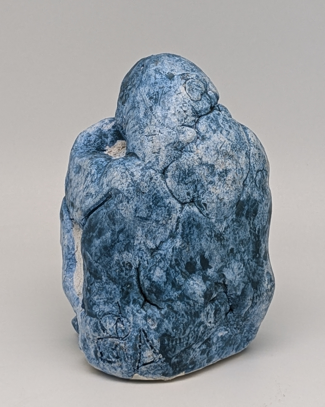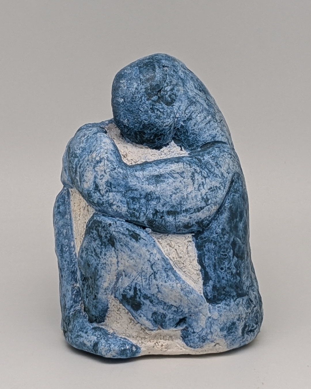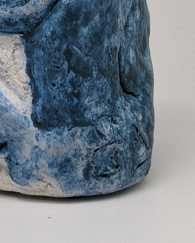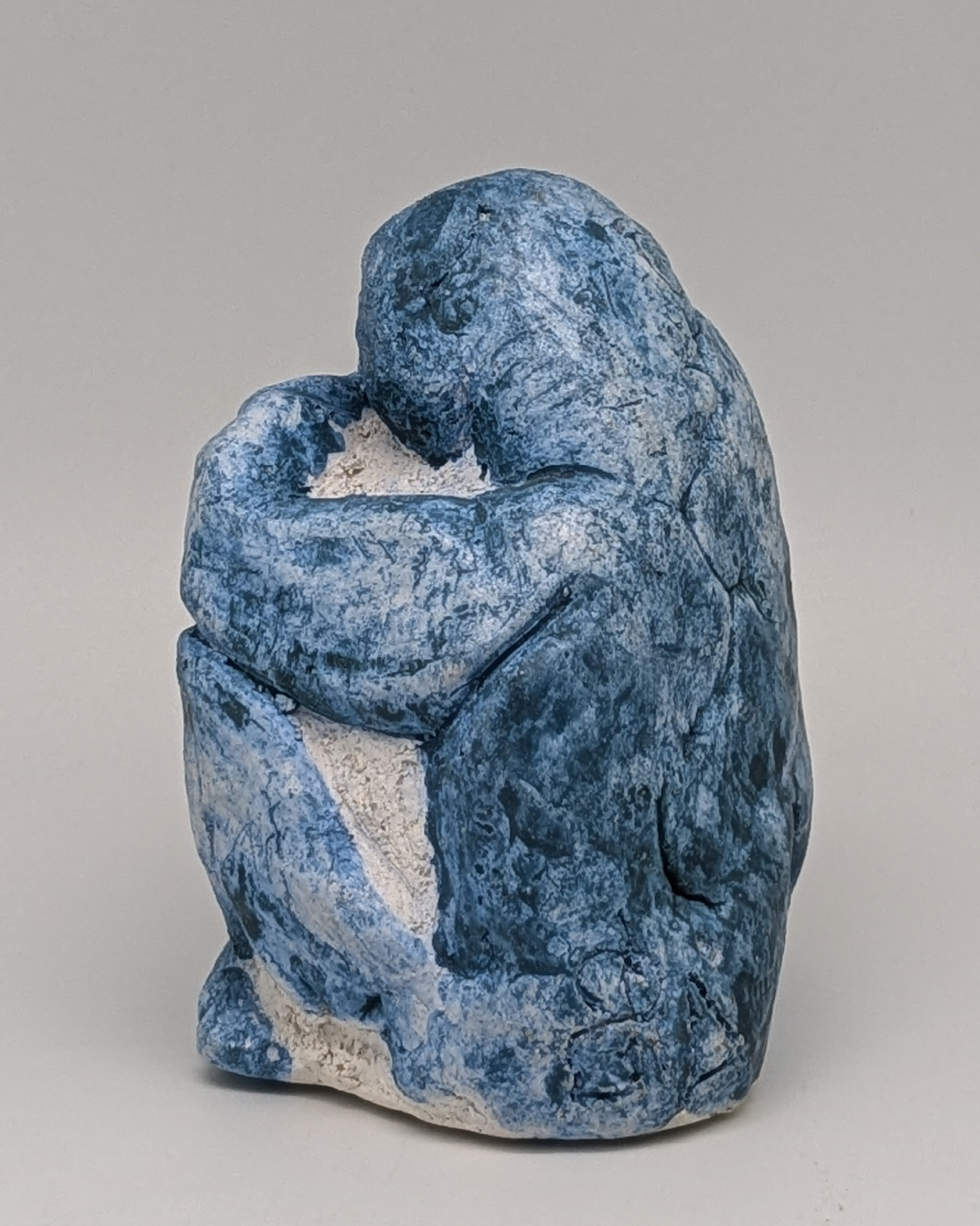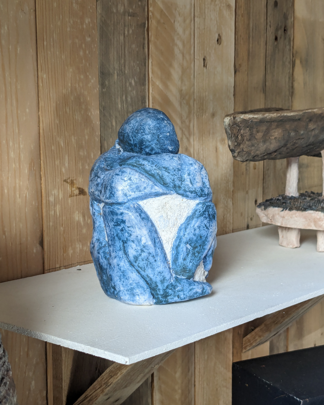 Homme bleu - Sculpture en grès, ses couleurs dominantes sont bleu et blanc