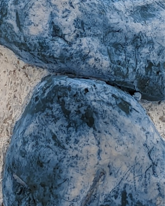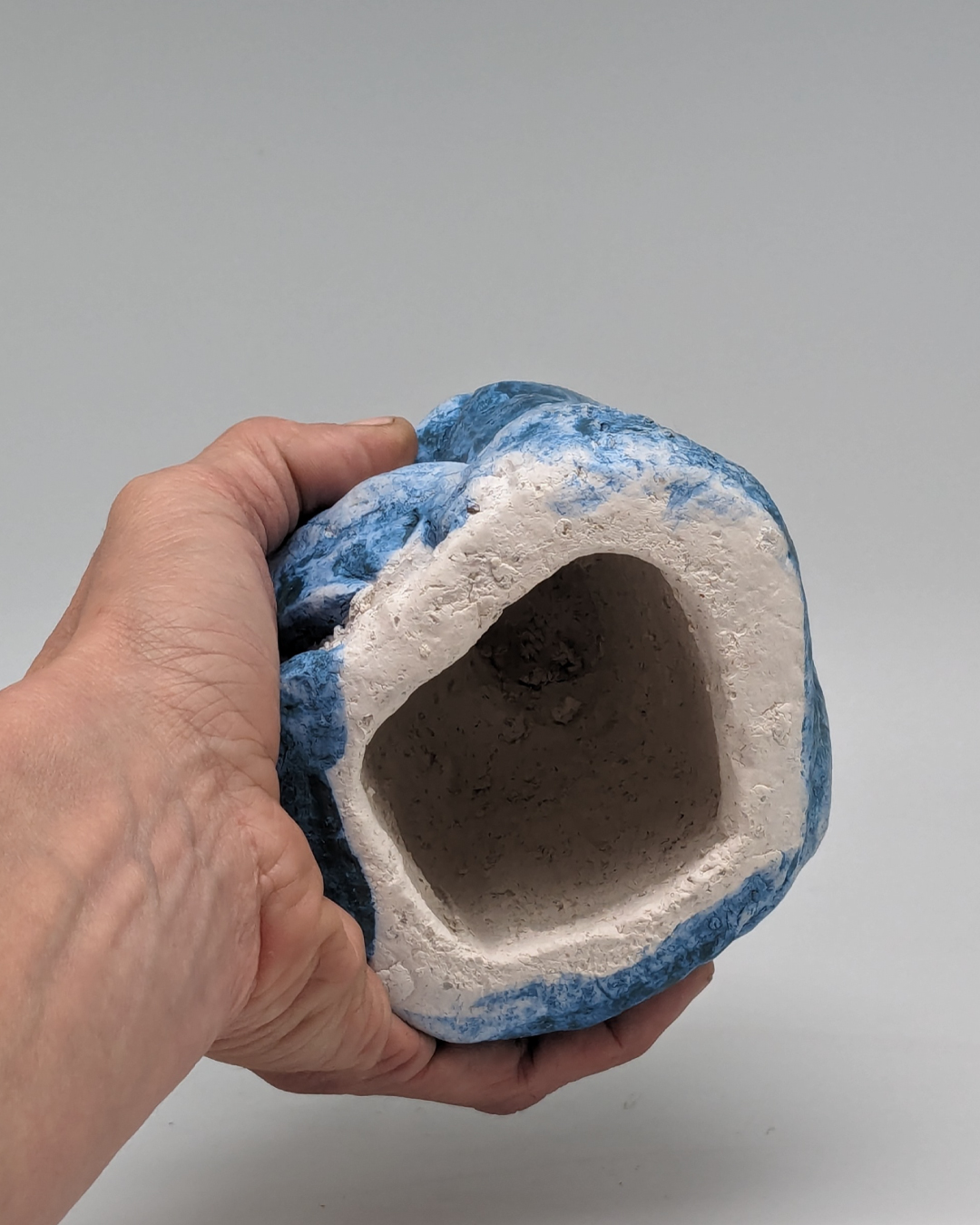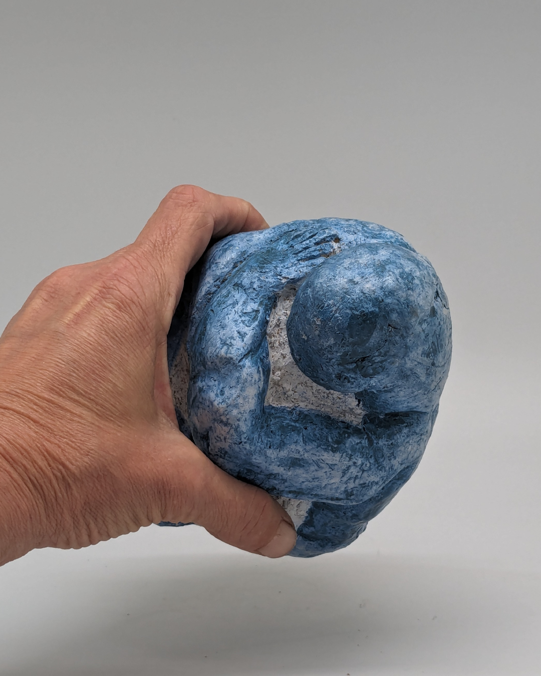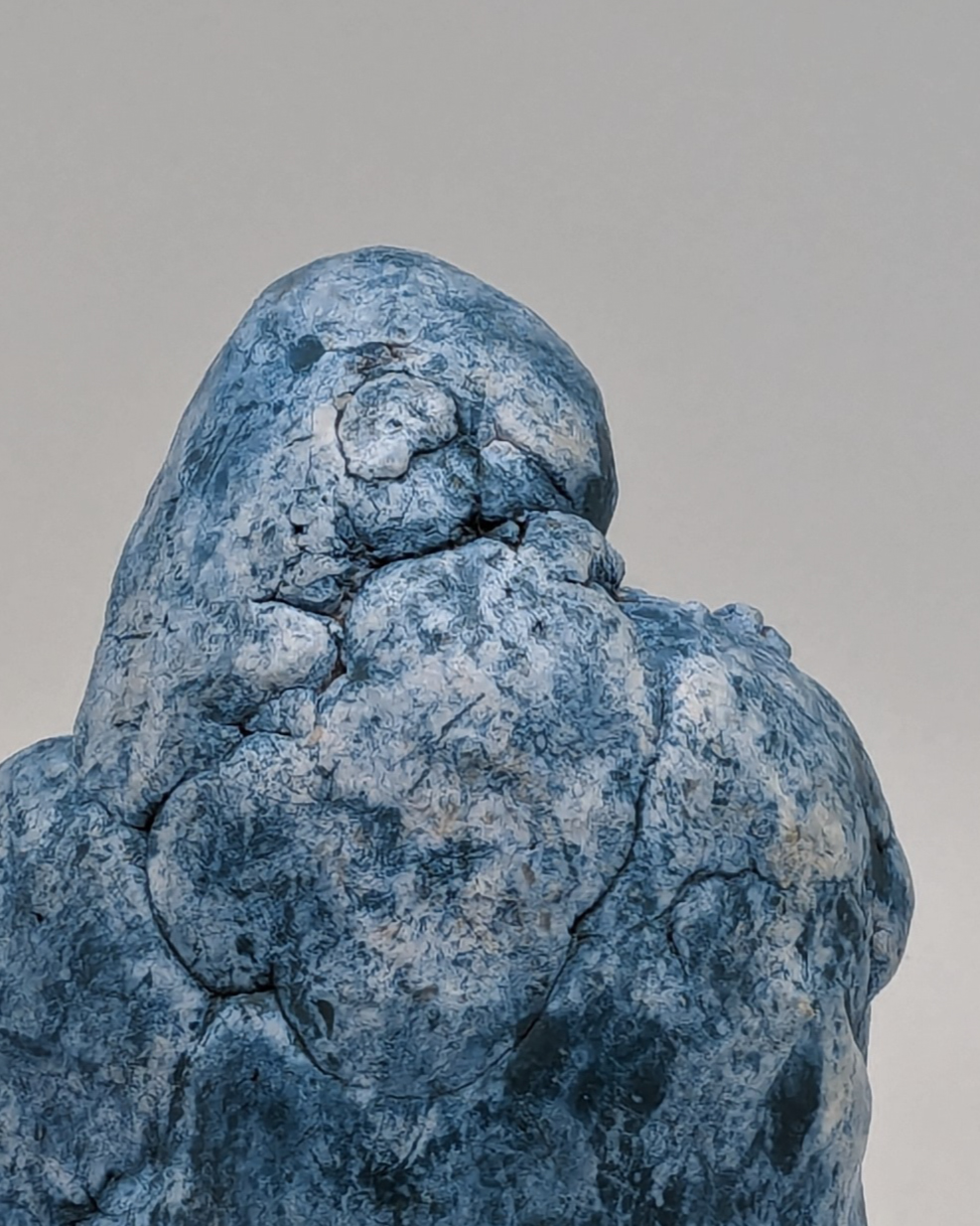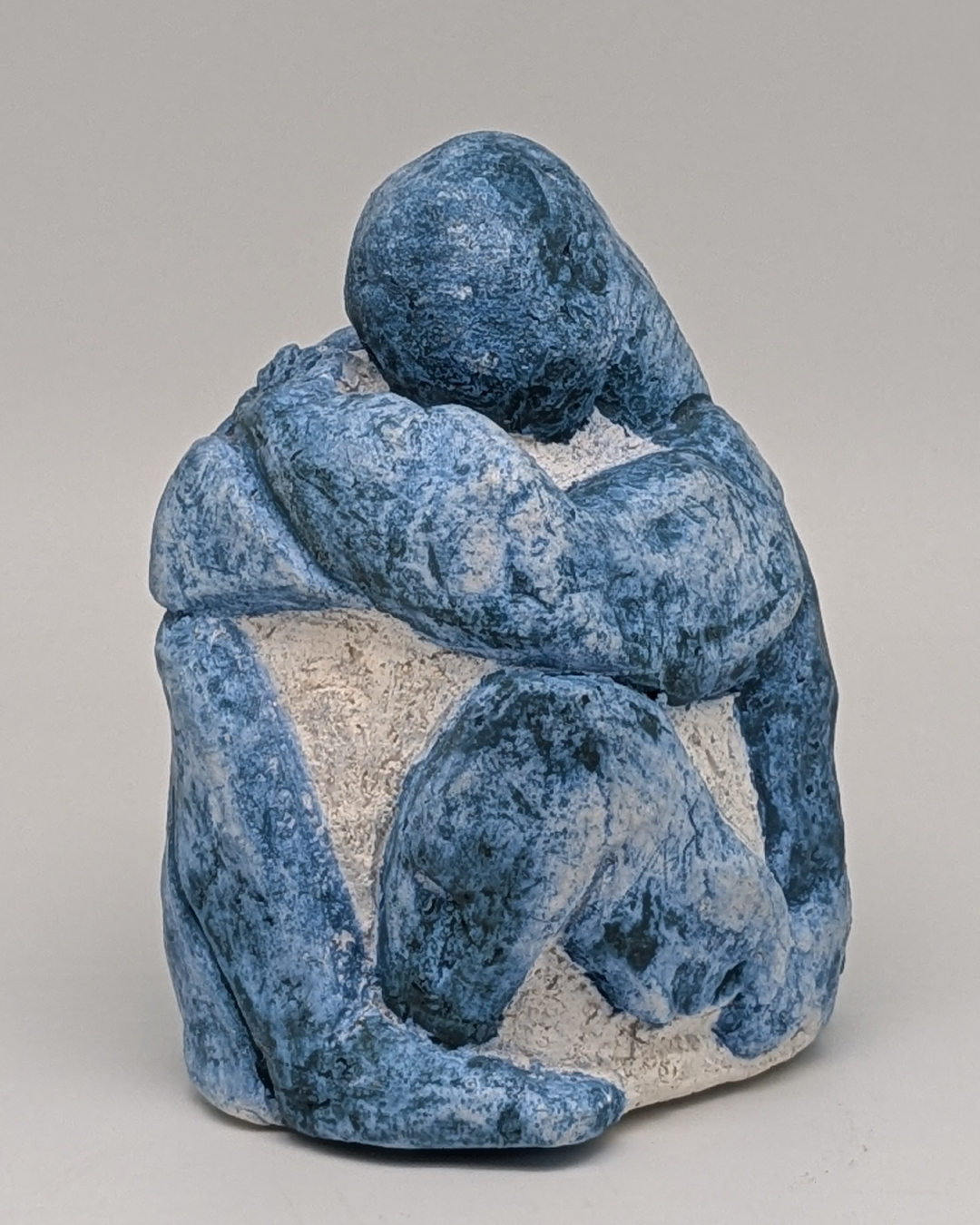 Homme bleu - Sculpture en grès, ses couleurs dominantes sont bleu et blanc