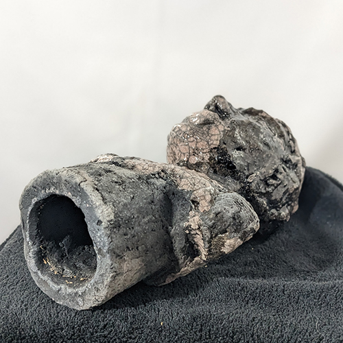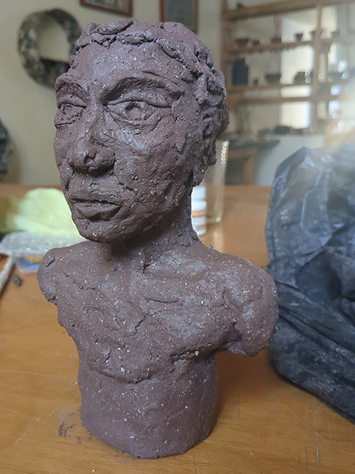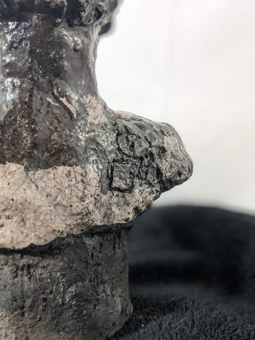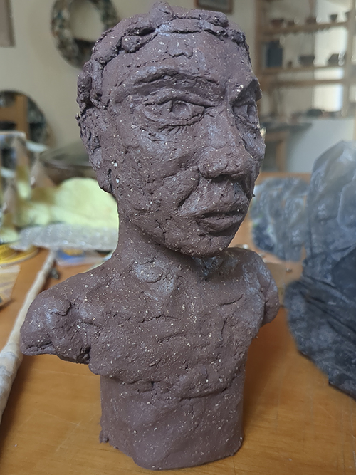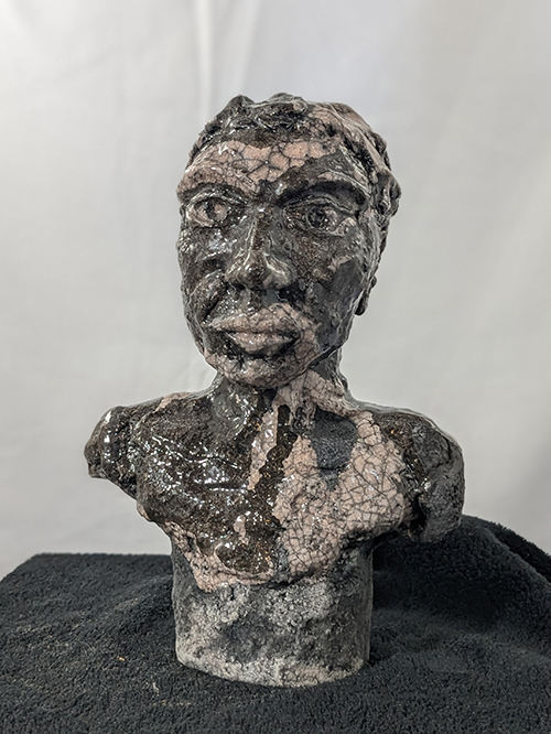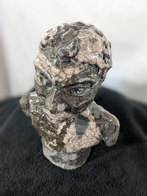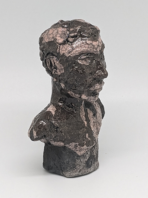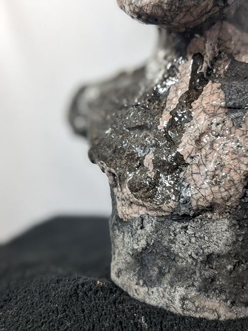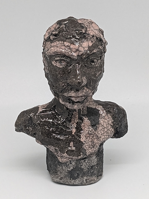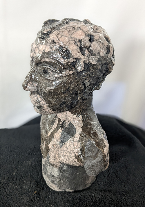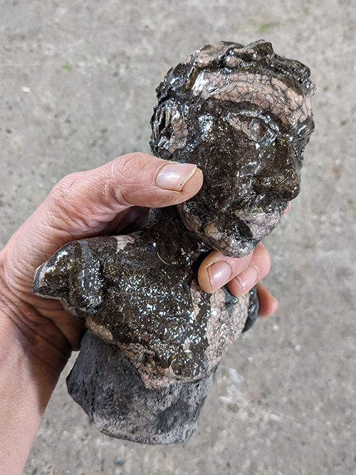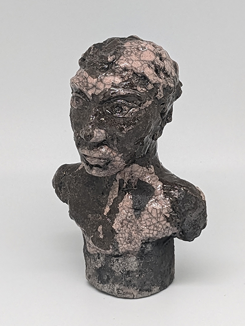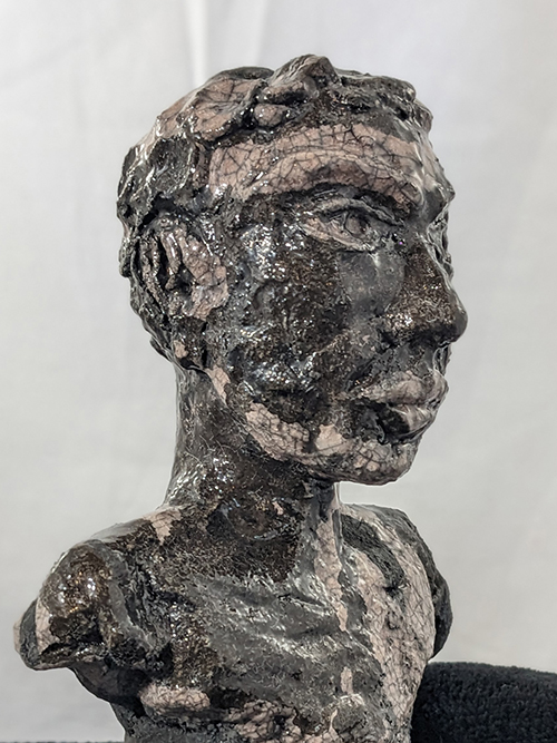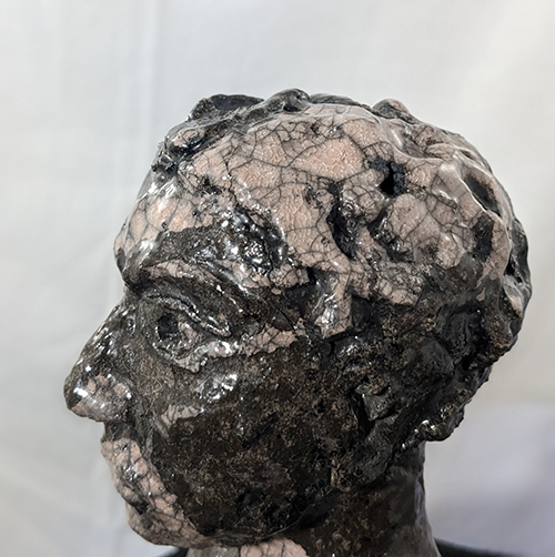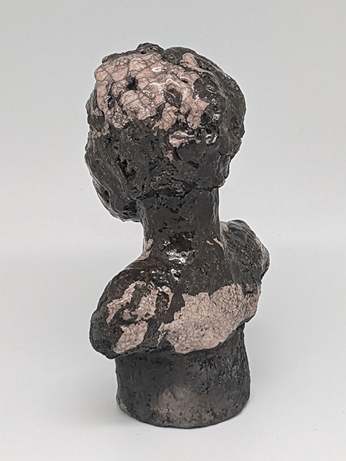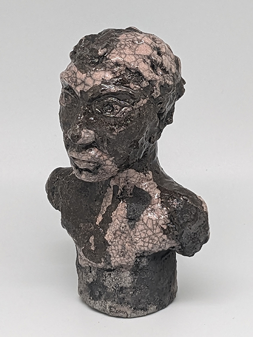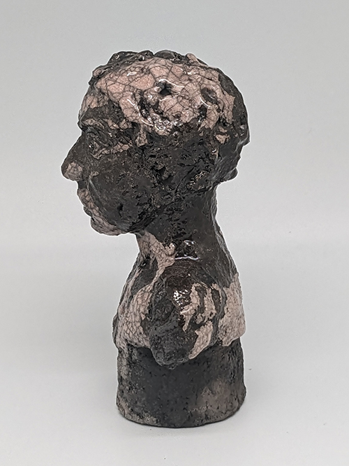 Tête réduite 1 - tête en grès signée - Façonnée, émaillée et enfumée par mes soins dans mon atelier à Maureillas Las Illas.