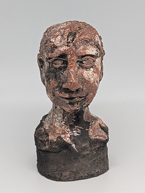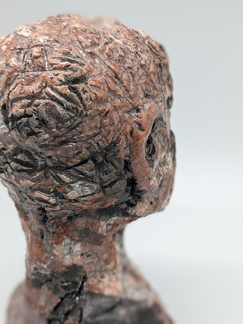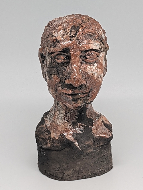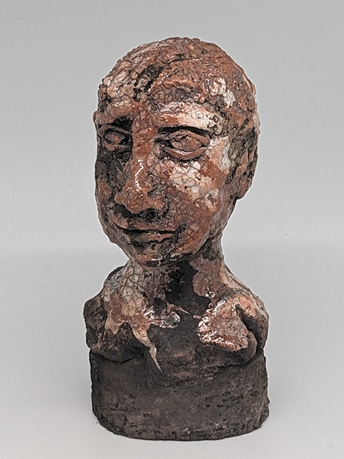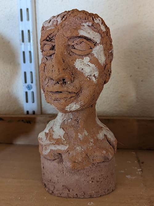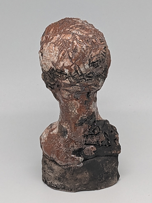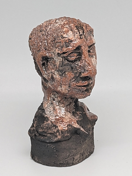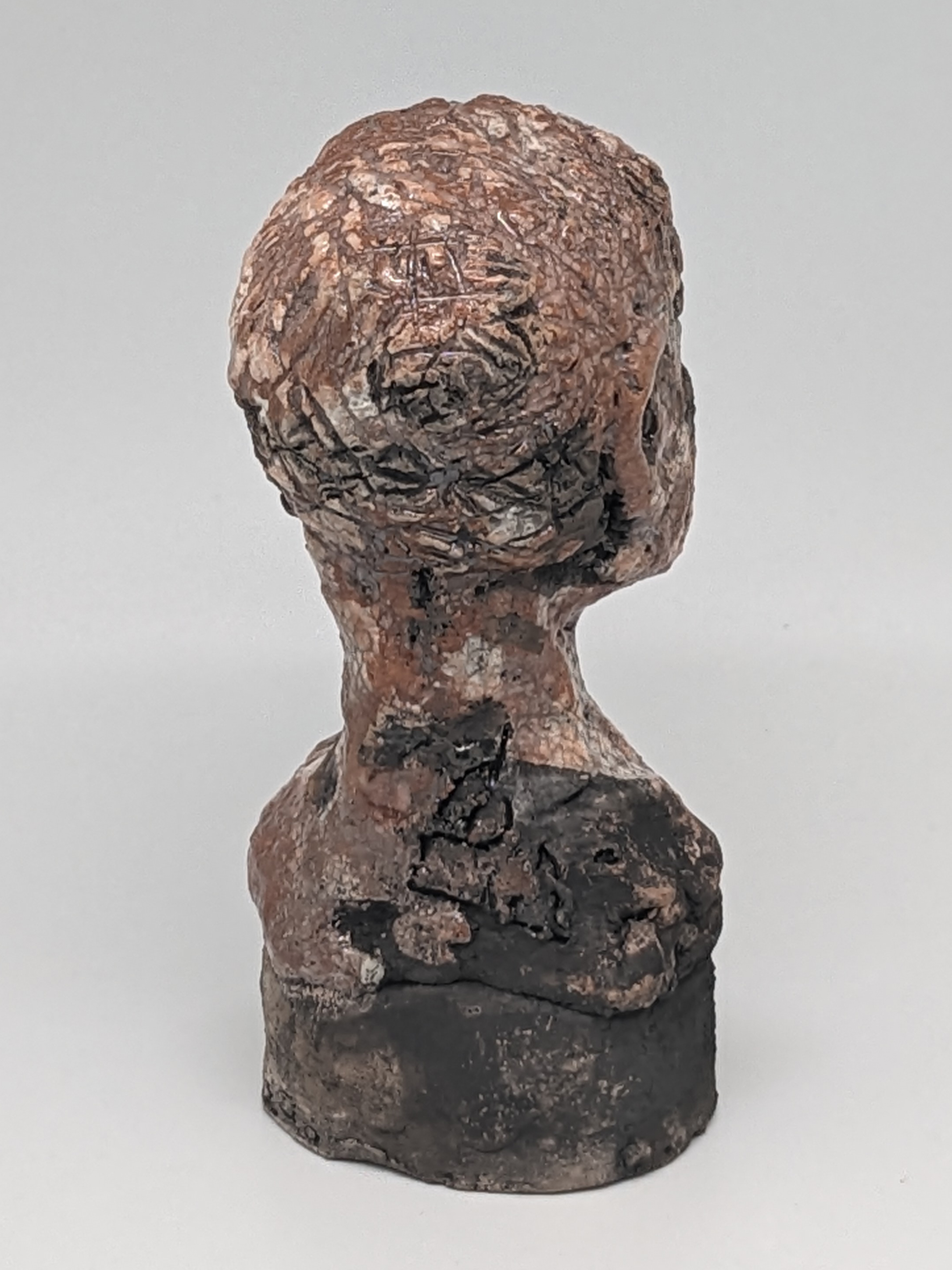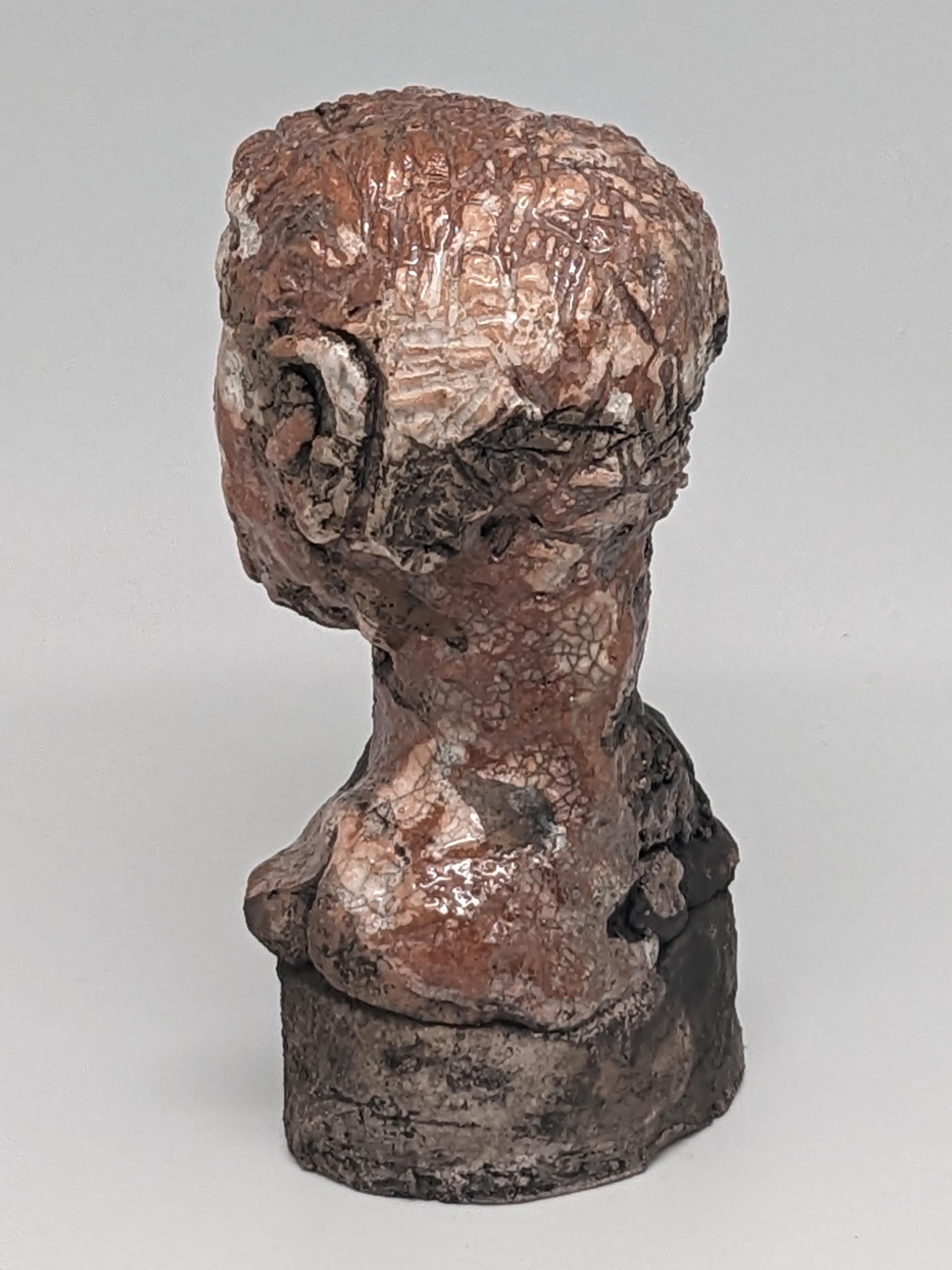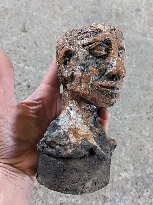Tête en grès signée - Façonnée, émaillée et enfumée par mes soins dans mon atelier à Maureillas Las Illas.