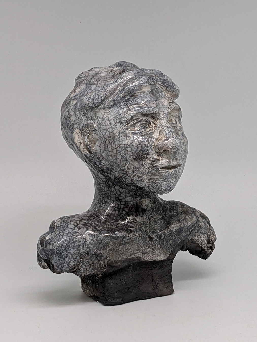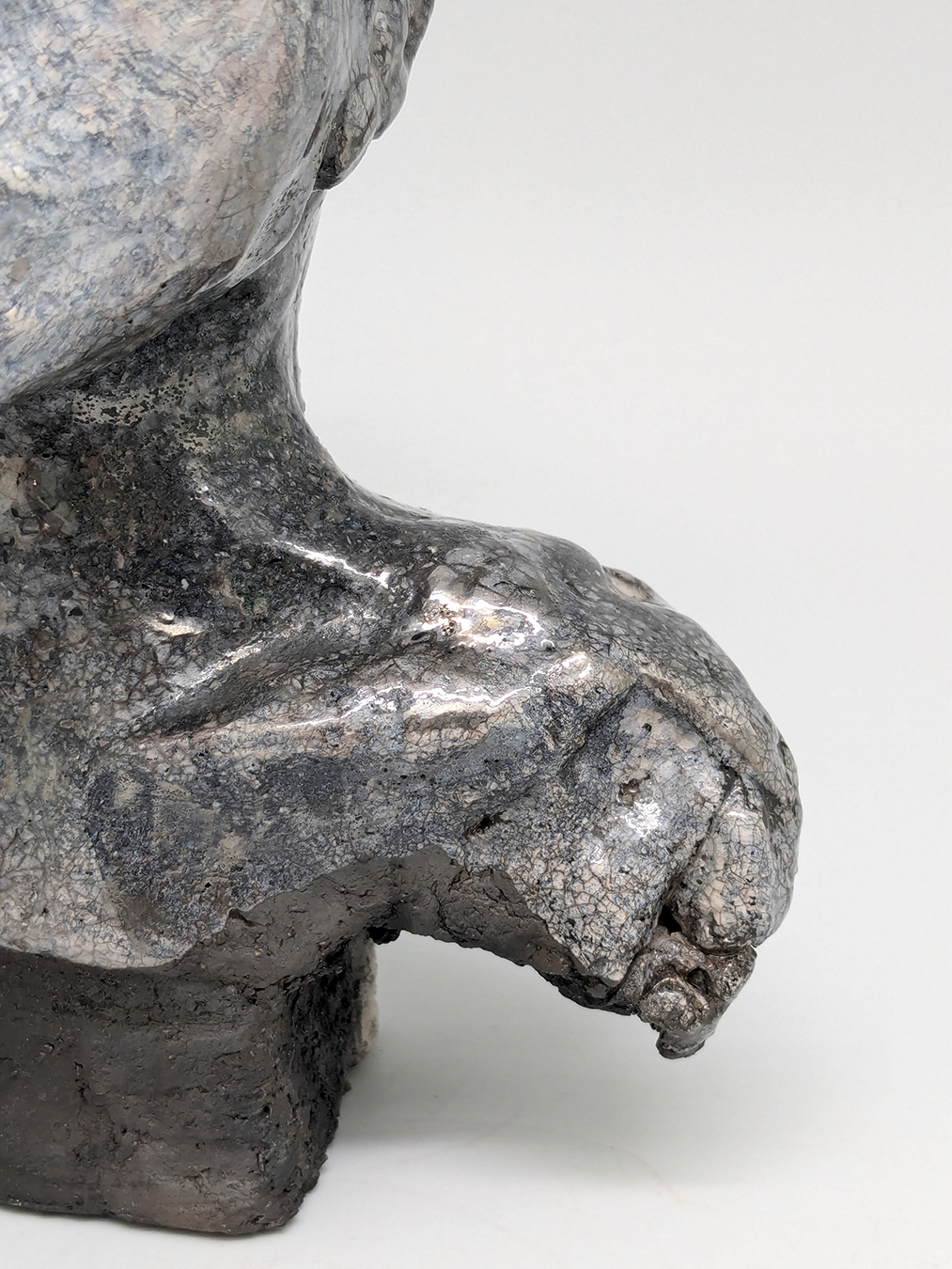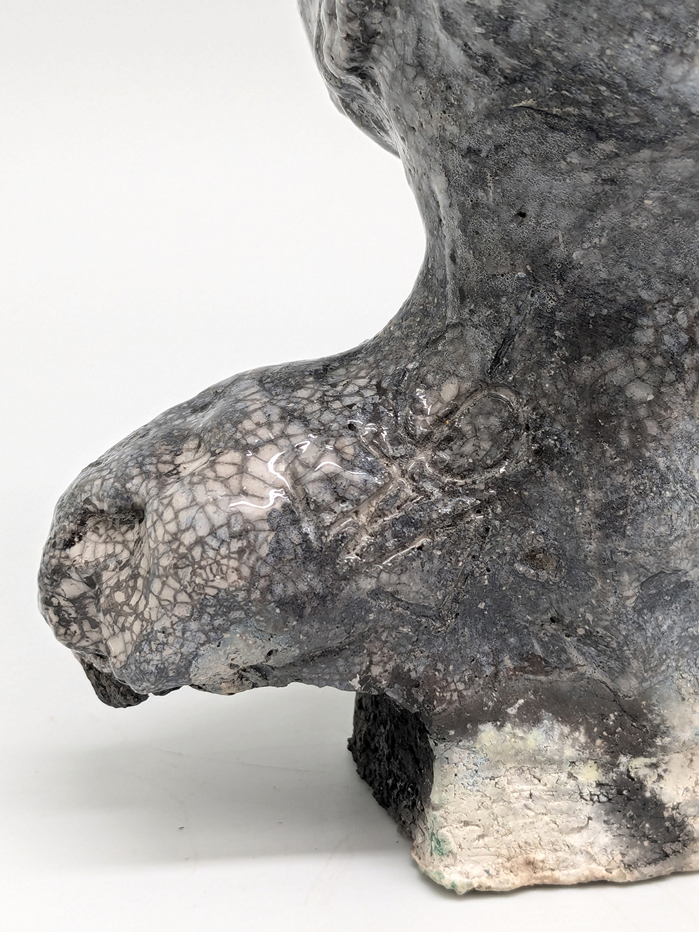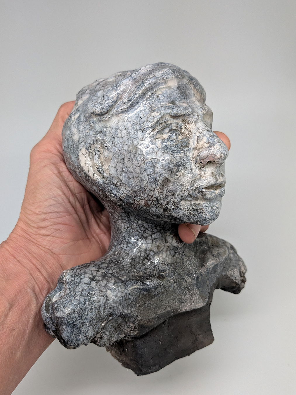 Tête en grès signée - Façonnée, émaillée et enfumée par mes soins dans mon atelier à Maureillas Las Illas.