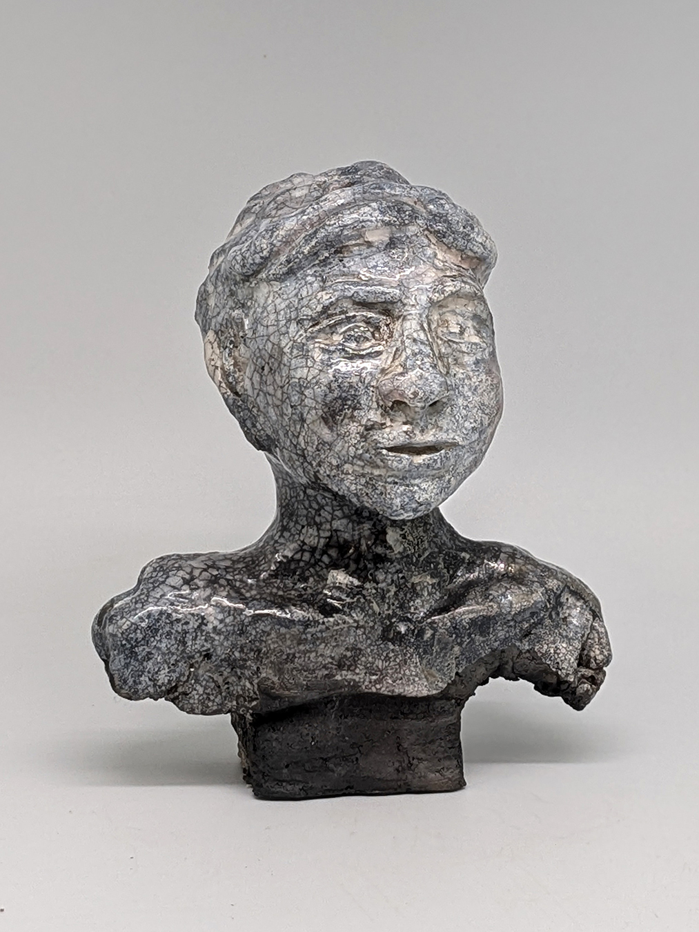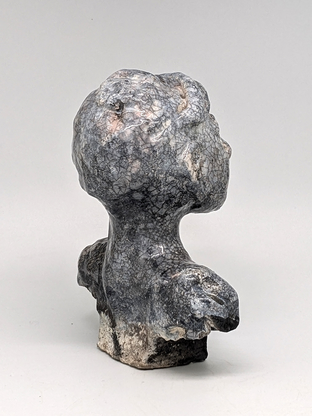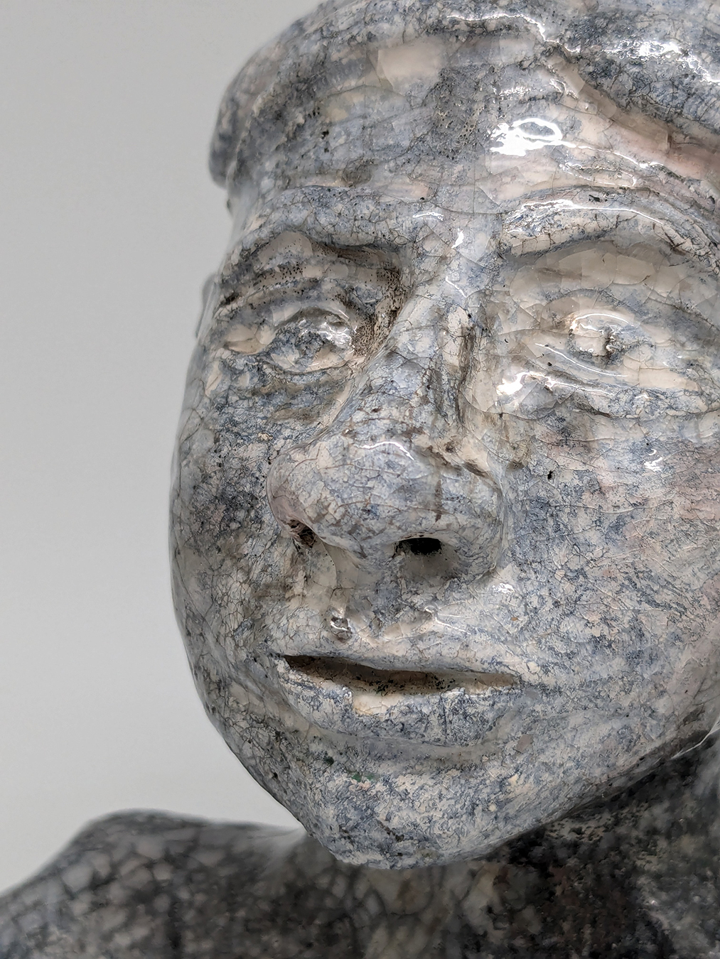 Tête en grès signée - Façonnée, émaillée et enfumée par mes soins dans mon atelier à Maureillas Las Illas.