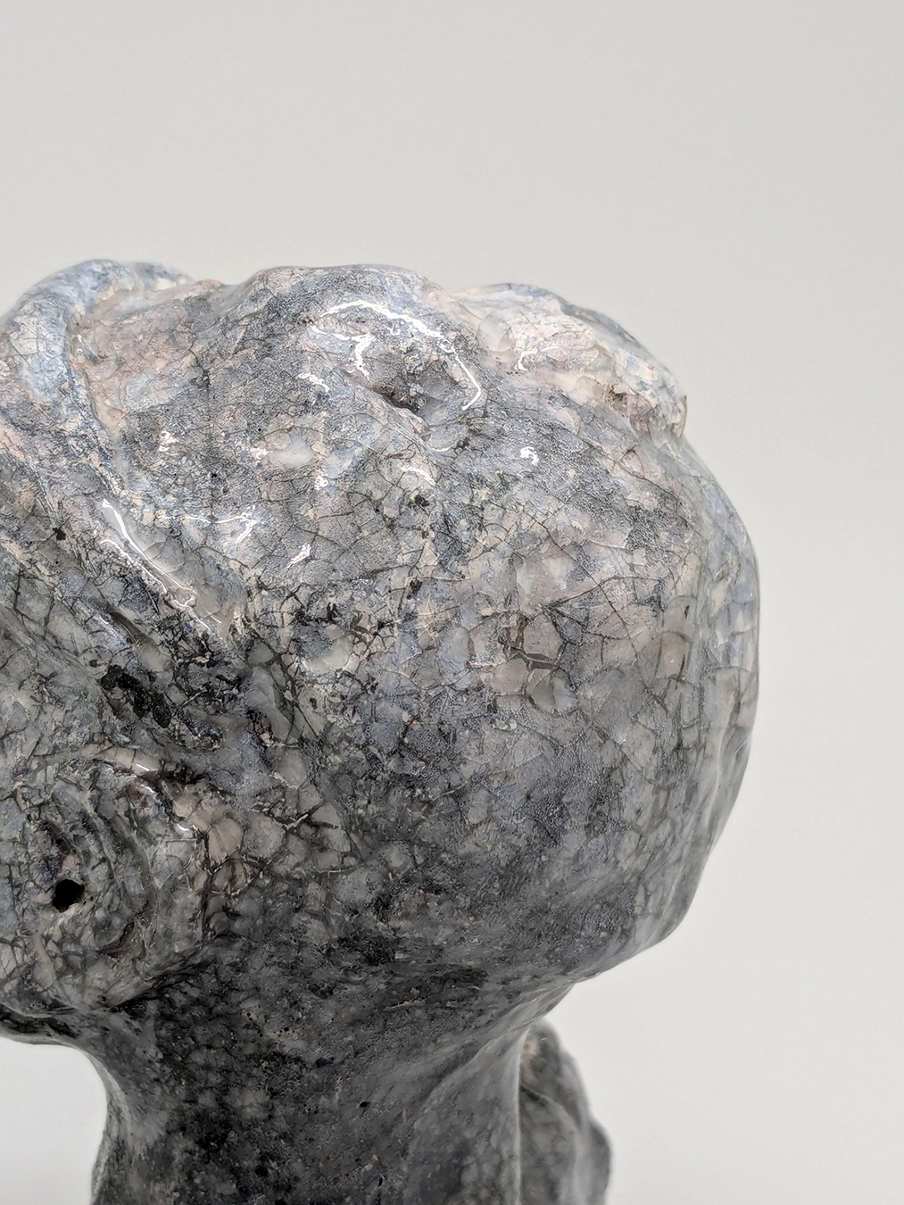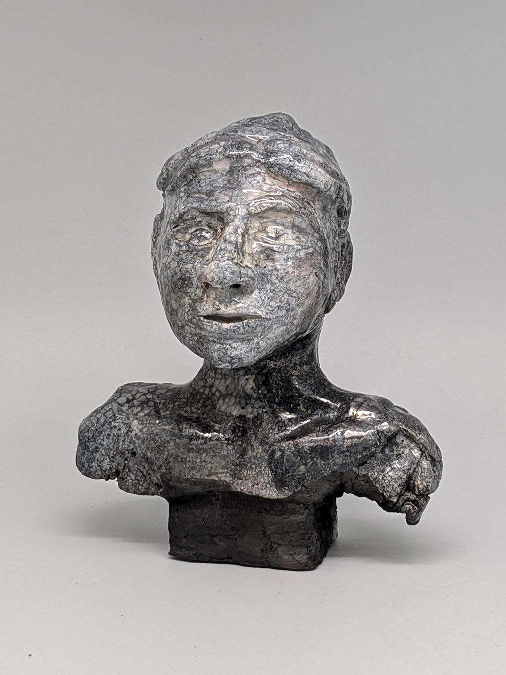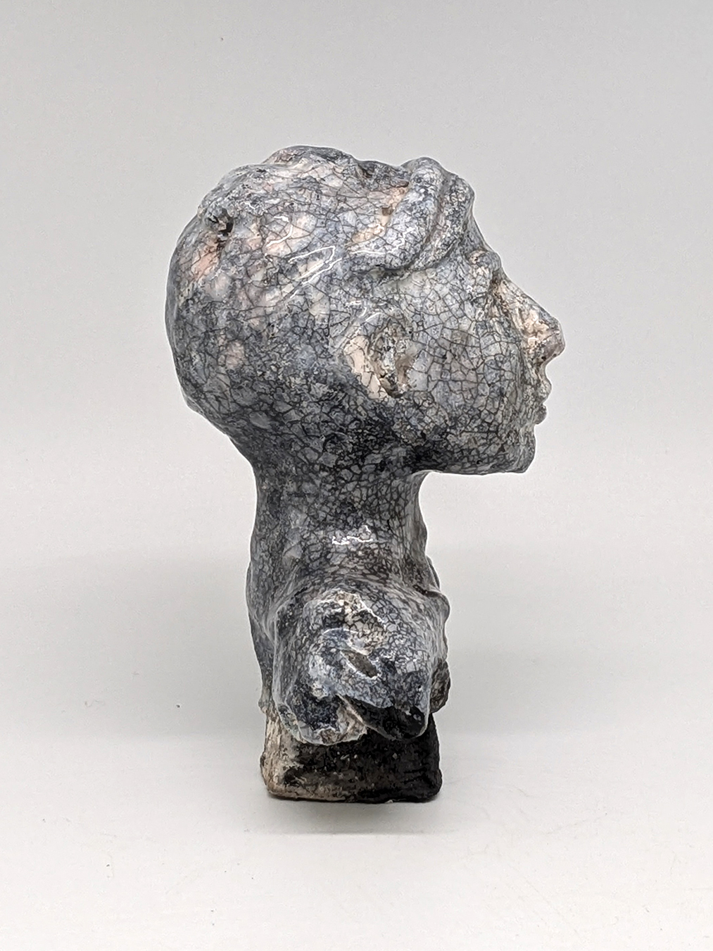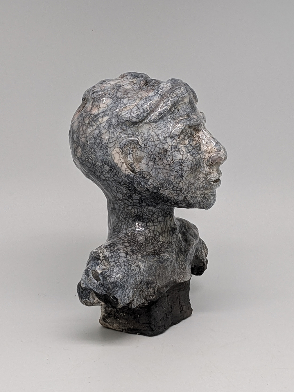Tête en grès signée - Façonnée, émaillée et enfumée par mes soins dans mon atelier à Maureillas Las Illas.