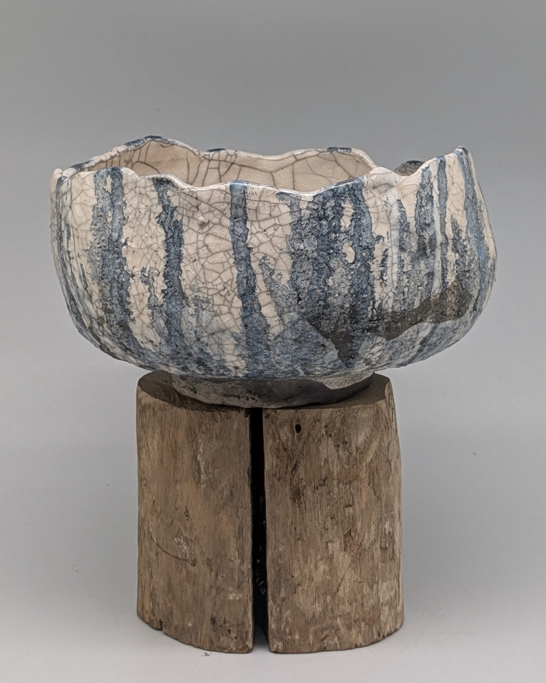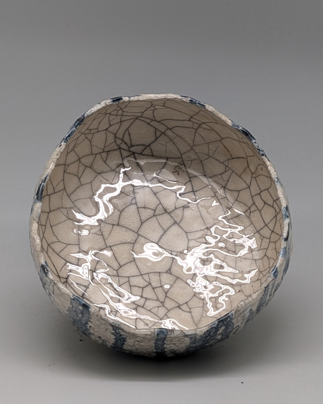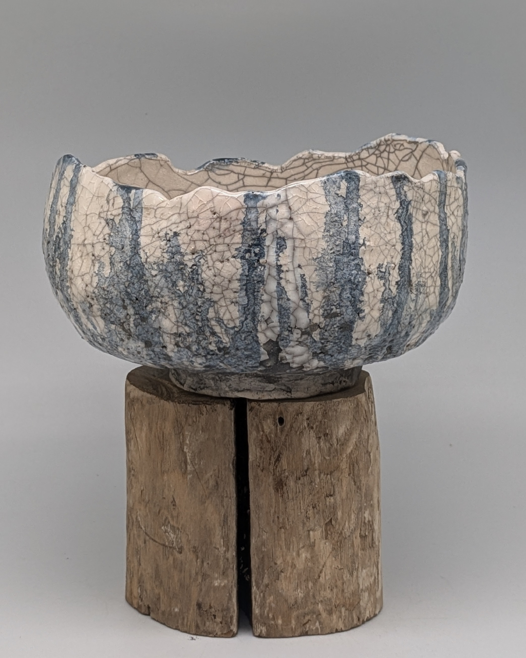 Hauteur 10 cm - diamètre max 18 cm - diamètre col 17 cm - diamètre pied 8 cm - poids 0.765 Kg - grès - oxydes - émail - enfumage